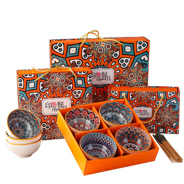 Celebrate the fusion of Bohemian spirit and Japanese craftsmanship with these porcelain bowls featuring a sleek, modern minimalist design. Enhanced by playful underglaze colors, the sets include two, four, or six bowls along with matching chopsticks. This gift box offers a lively way to enjoy traditional Japanese dining with a creative twist, making it an ideal present full of culture and joy.